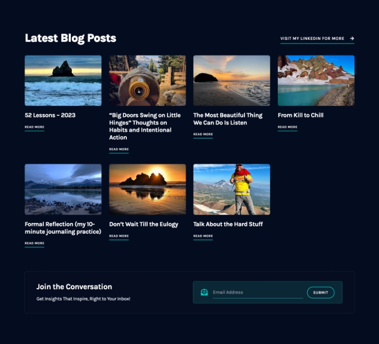 BNP Engage worked with Josh to create a logo and visual style that matched his personality and approach. Once an identity for his personal brand was established, we built a custom website to showcase his services and drive engagement. The content we wrote took his voice and elevated it to work for an online audience. We worked directly with Josh to ensure he's able to easily edit and manage his website without extra cost, time, or overhead.